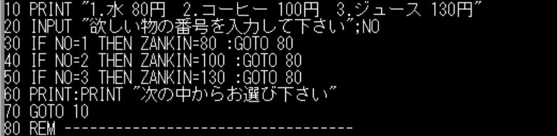※BASIC のイメージ こんなのを50行も100行も打って、プログラムを作ります