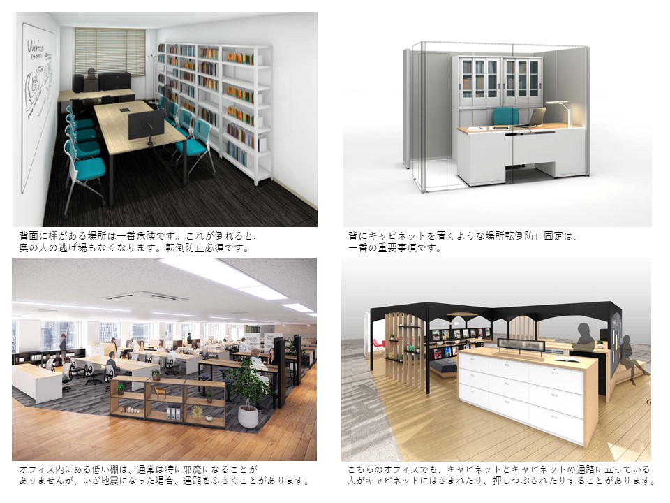 今回の群発地震があったことで家庭でも様々な備えをするかと思いますが、オフィス内で怪我人を増やさないためにも