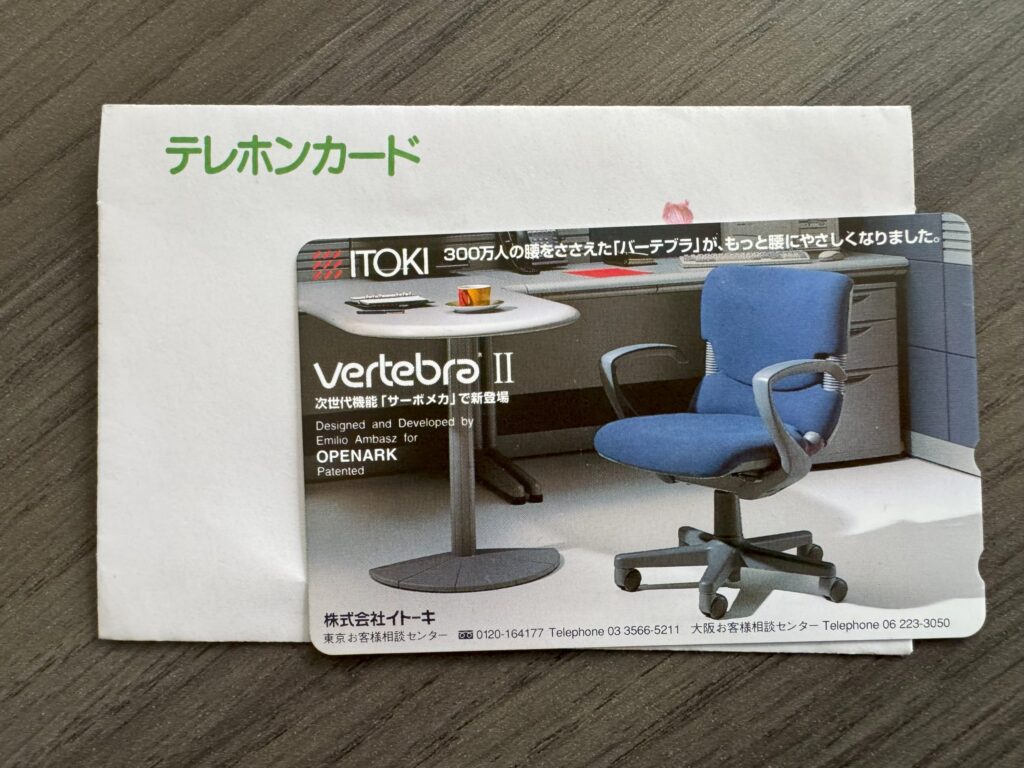 今回整理している中で出てきたものの1つに、イトーキの「バーテブラⅡ」のテレフォンカードがありました。