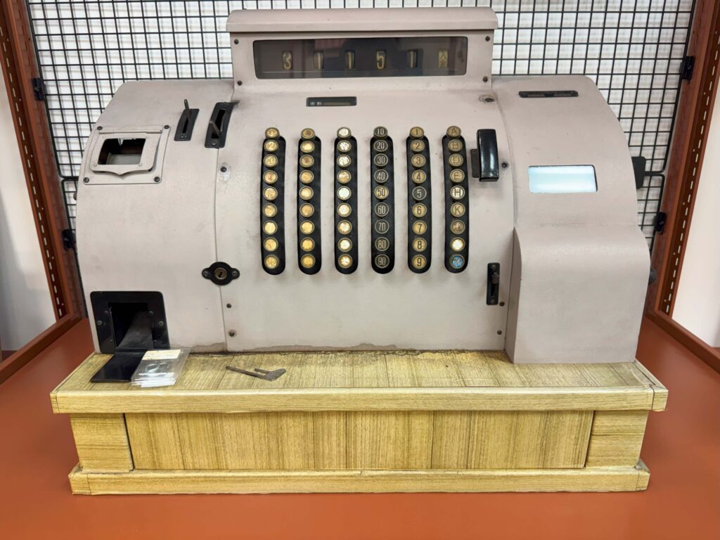 動かしたところ、右のハンドルを1回転して、「チーン」という音とともに、金銭を入れている引き出しが「ガチャ」と出てくるので、びっくりしていました。今時、ああやって動くことがすごいことなのかもしれません。