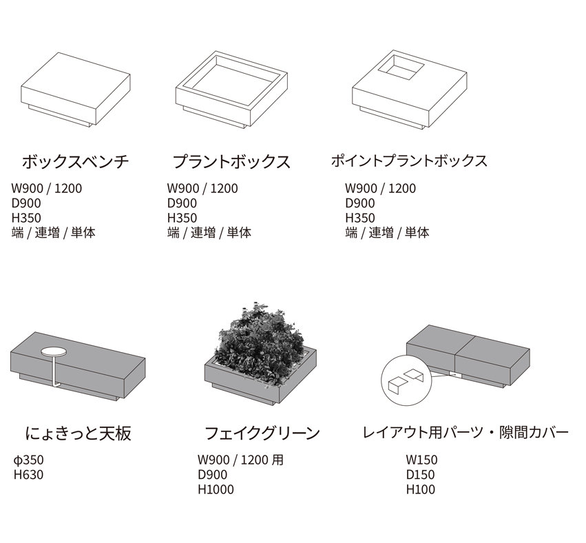 などがあり、グリーンを組み合わせた空間づくりも可能です。
