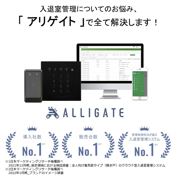 アリゲイトは、株式会社アートが出している、クラウド型入退室管理システムです。