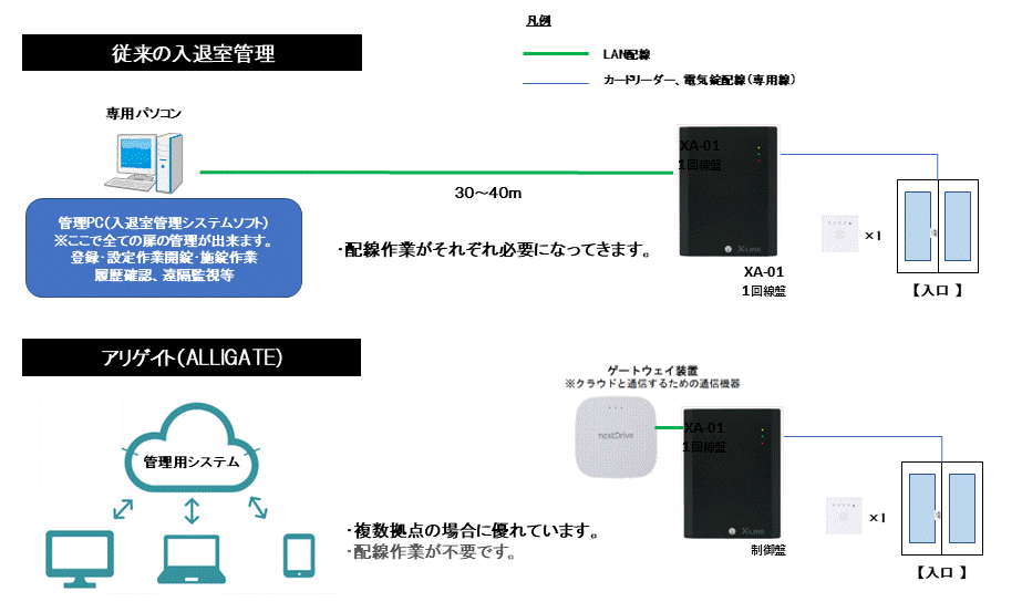 しかし、このアリゲイトは、クラウドで管理する為、設置する扉から管理する端末までの距離を問いません。もちろん、建物をまたいでも、全然違う場所でも管理することが可能です。