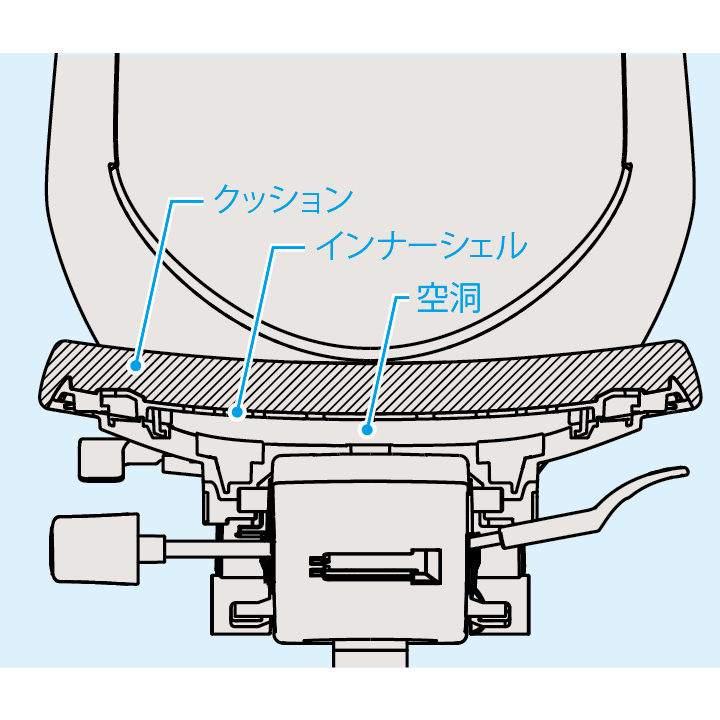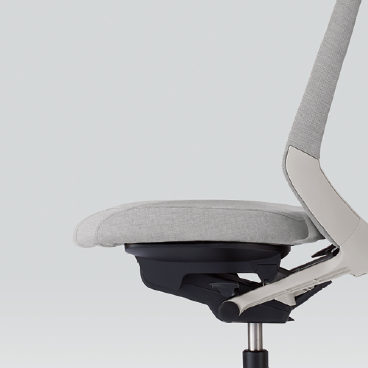 座部のインナーシェル(芯材:ポリプロピレン樹脂製)には、最適な箇所が着座荷重に応じて自在にたわむように多数のスリットを設けています。フレキシブルに姿勢変化に対応し、からだになじむ座り心地を実現しました。