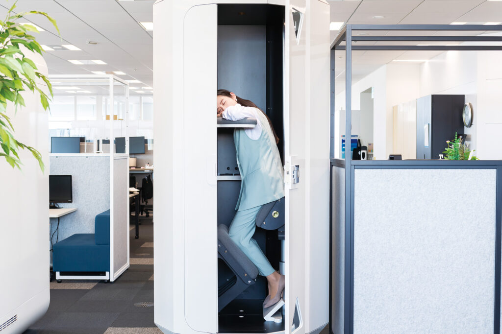 ボックス内では快適な静音性を維持。オフィスの声や物音も適度に遮断されるため、仮眠を妨げられることなく過ごせます。